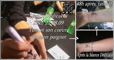 Egy rajongó megkérte Tomot a kölni autogrammosztáson, hogy rajzoljon egy szivet a kezére, amiből 2 nappal később tetoválás lett...